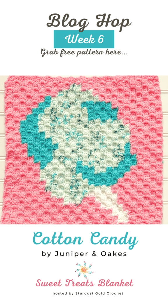 Welcome to the 6th installment of the Sweet Treats Blankie C2C CAL. The 6th Square in the Sweet Treats CAL is the Cotton Candy Square designed by me, Erin of Juniper & Oakes