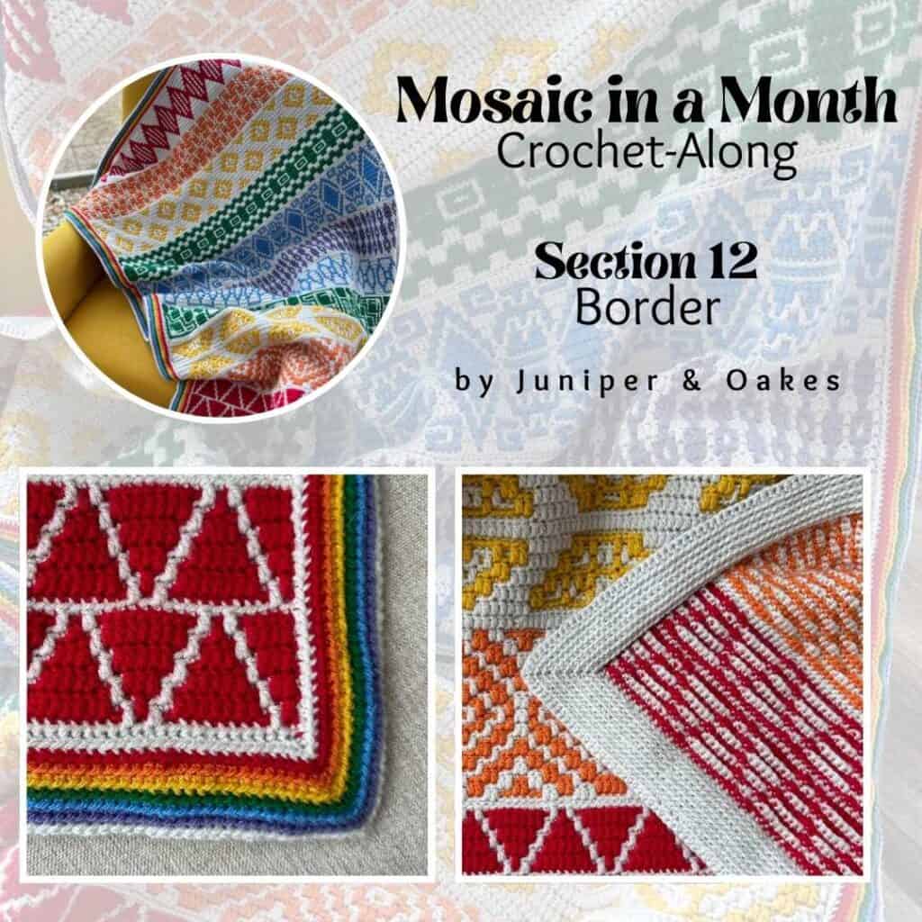 The 12th (and last) section of the Mosaic in a Month CAL is the Rainbow Envelope Border designed by me, Erin of Juniper & Oakes.
