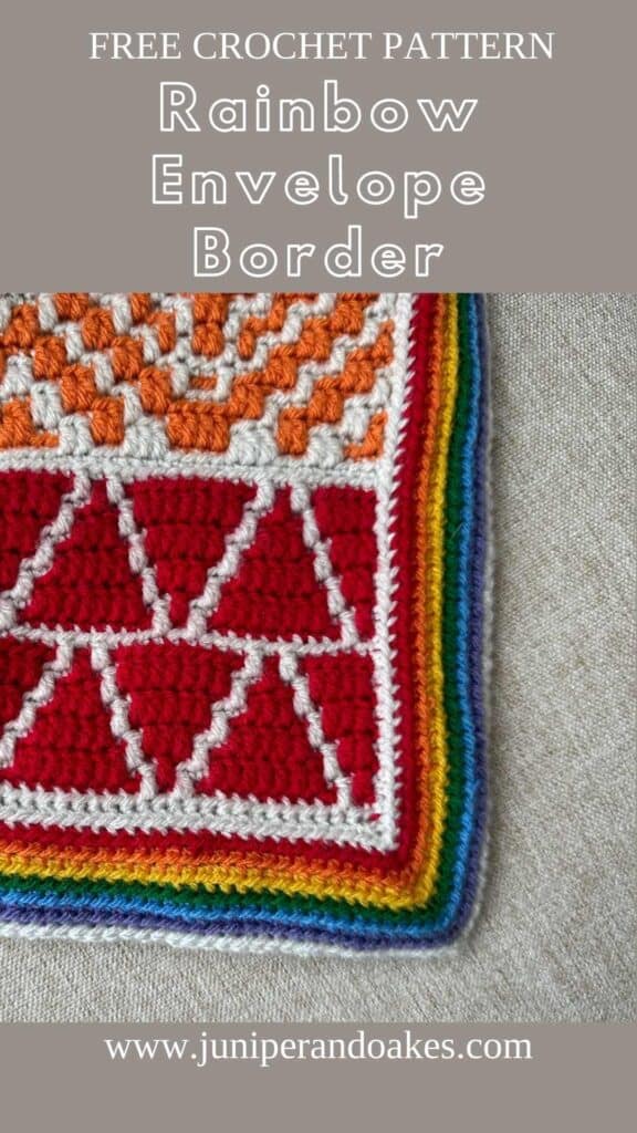 Read this blog post about a simple, solid-colored envelope border for mosaic crochet project. This rainbow envelope border follows the same method, just switching colors every round on the front border.