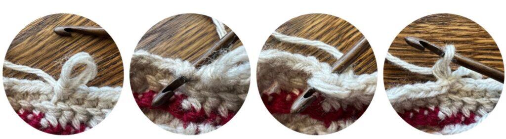 Insert hook through the back loop of indicated stitch, yo, pull up a loop, yo pull through both loops on hook.