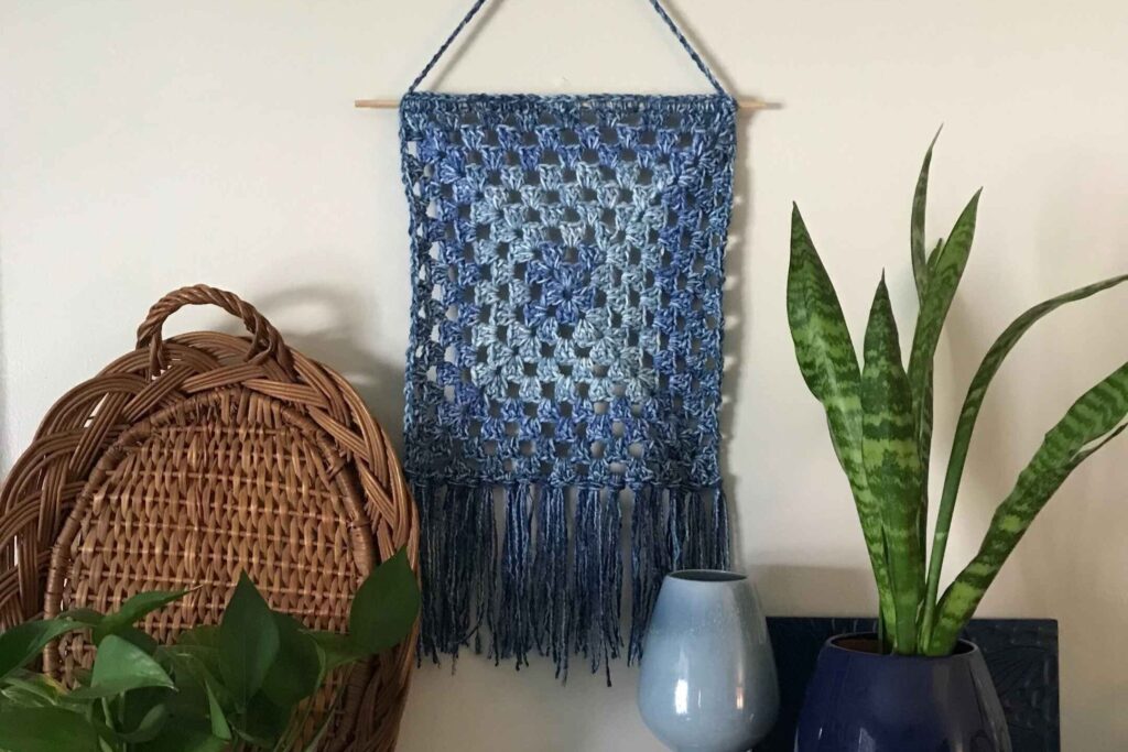 This is such a classic technique in the world of crochet and if youโre looking to add it to your tapestries, check out my Simple Granny Square Wall Hanging pattern. Itโs great for a one-evening project!